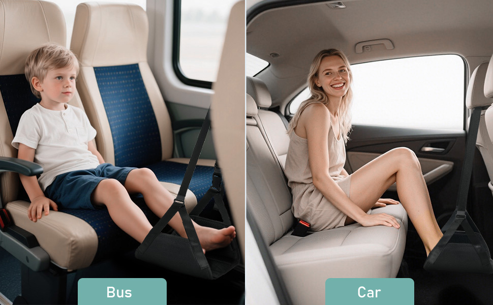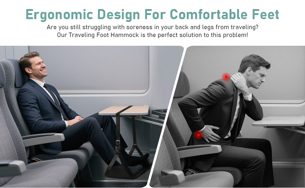 2-Pack Airplane Foot Hammock, Foot Rest for Plane Travel with Extended Adjustment Strap, Portable Desk Foot Hammock with Thickened Bamboo to Relax Your Feet, Foot Sling Travel Essentials