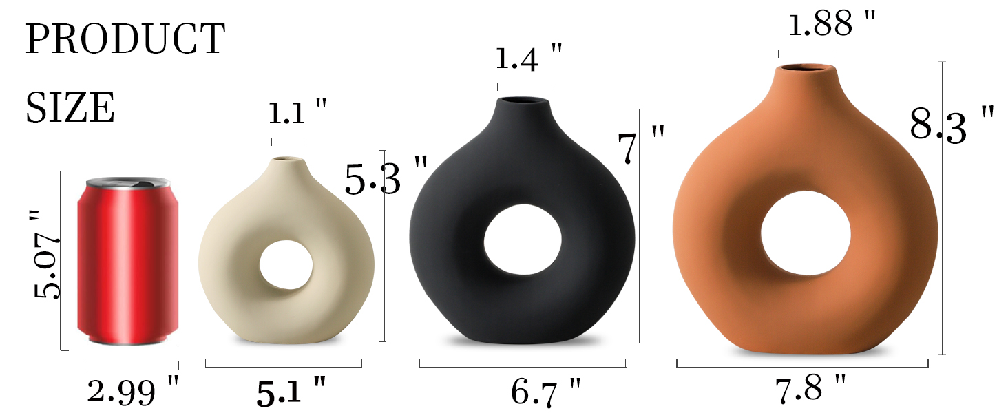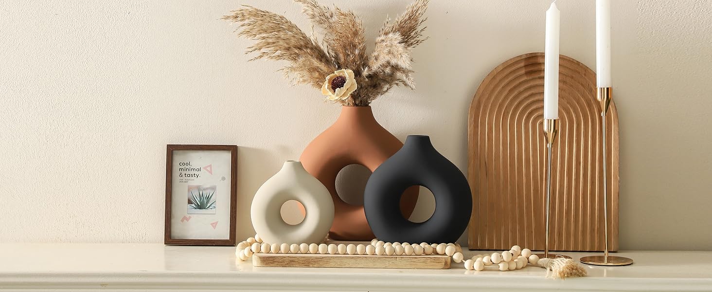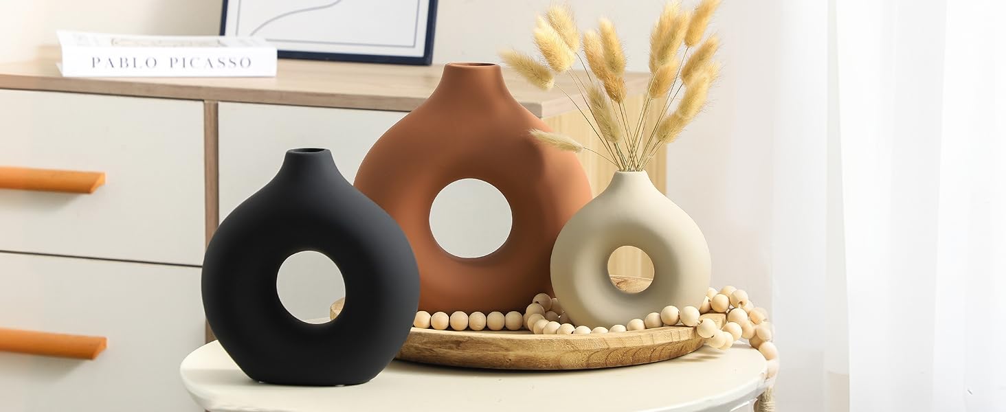 Ceramic Vase Home Table Decor - Flower Vases Set of 3 Small Living Room Centerpiece Decorations for Shelf Bedroom Office Kitchen Dining Desk Modern Aesthetic Farmhouse Decorative (Rust)