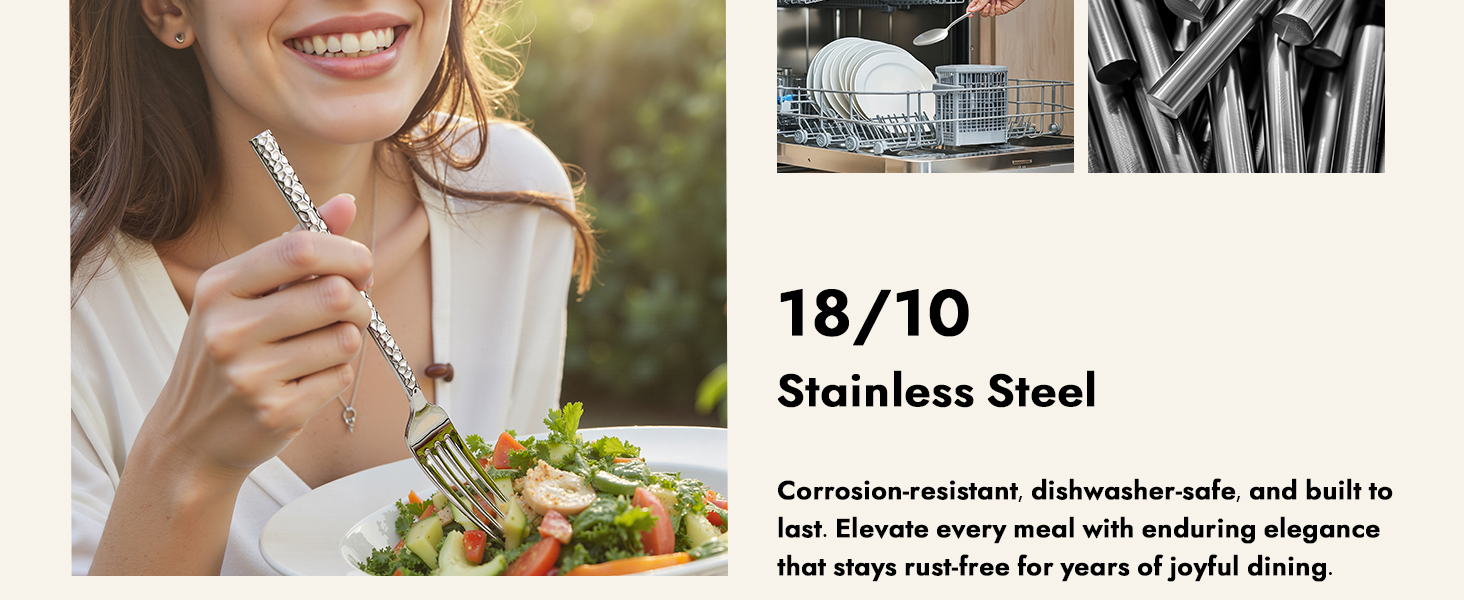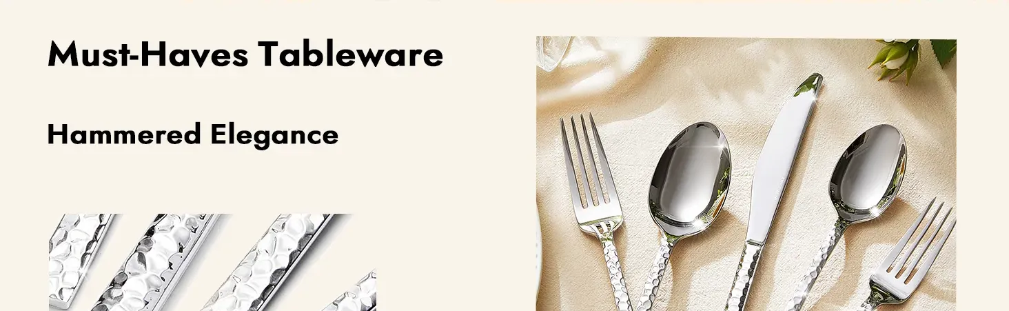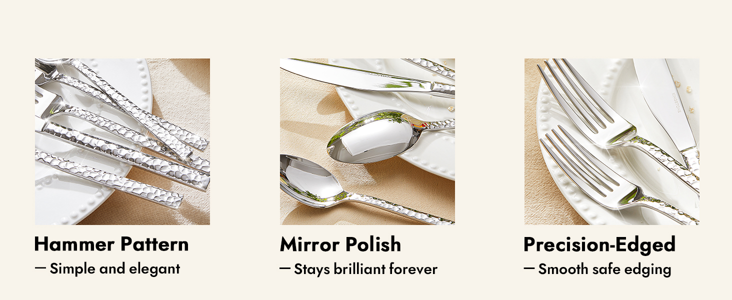 40 Piece Hammered Silverware Set, 18/10 Stainless Steel Flatware Set for 8, Cutlery Set for Home, Party, Wedding, Mirror Polished Dishwasher Safe