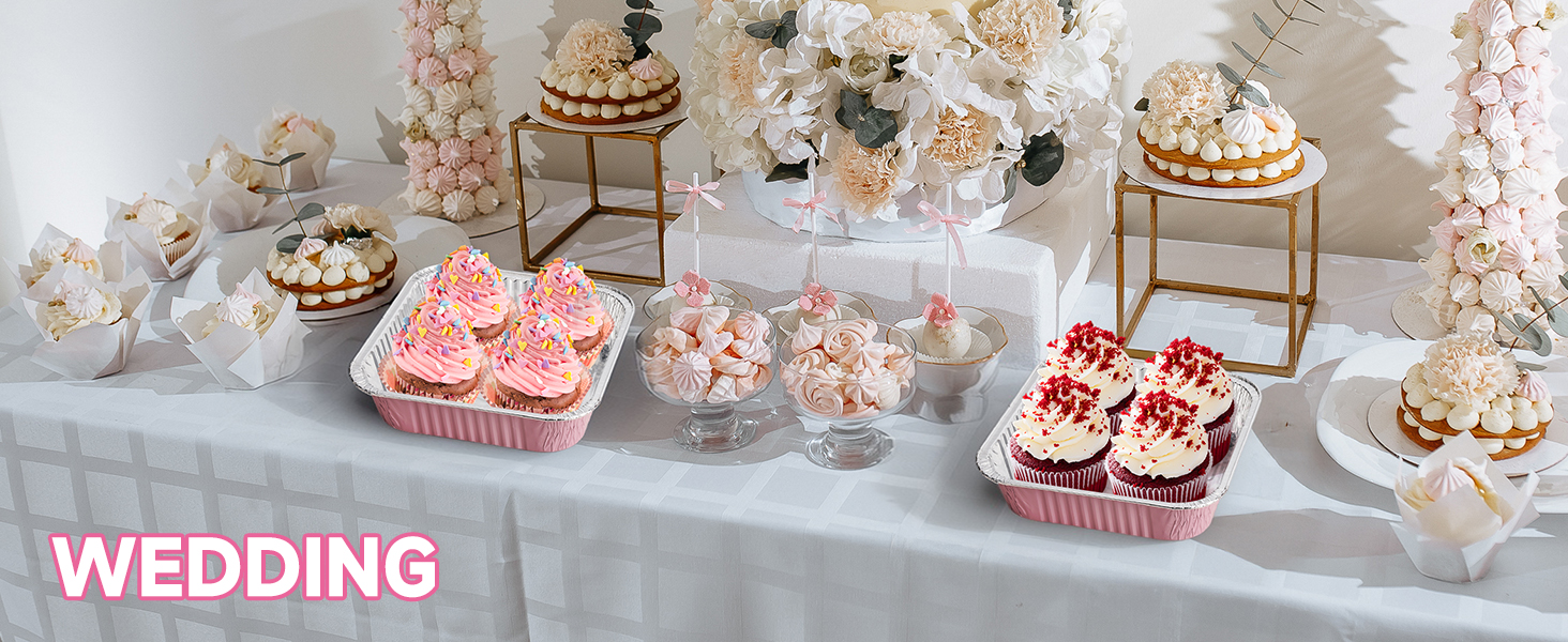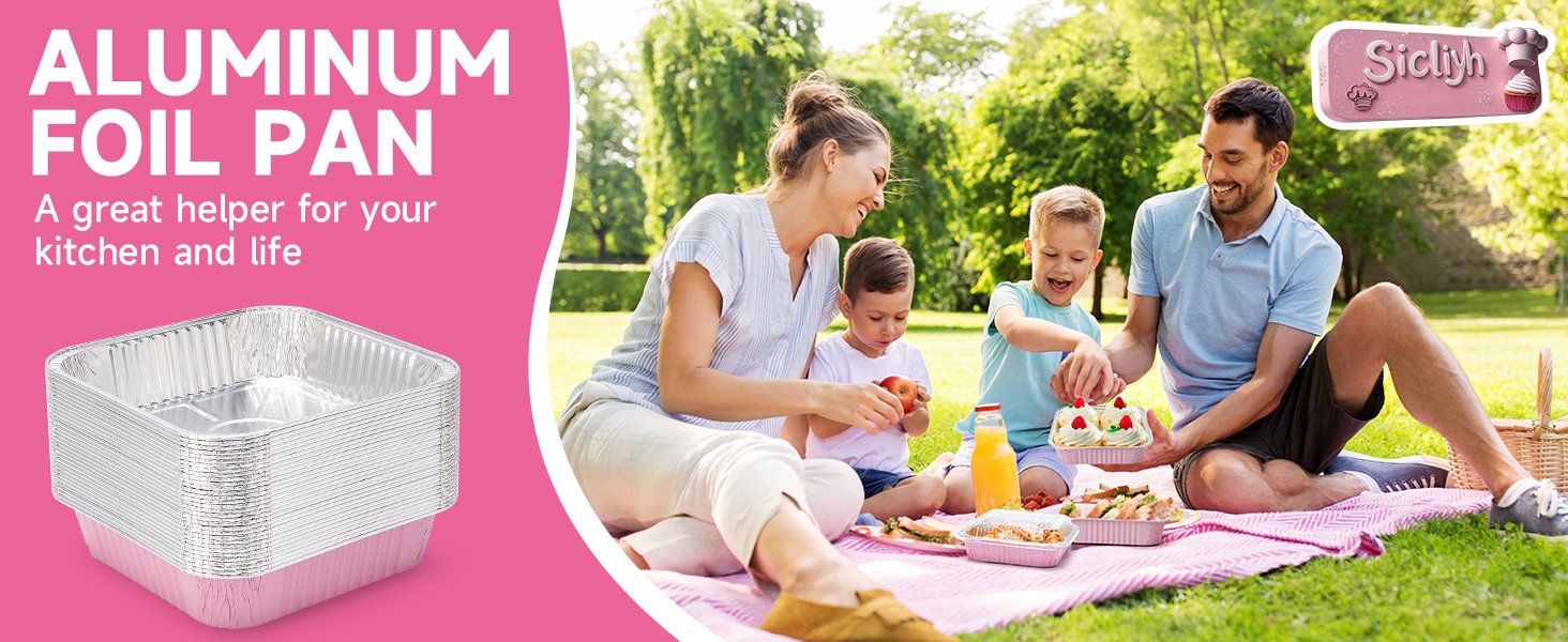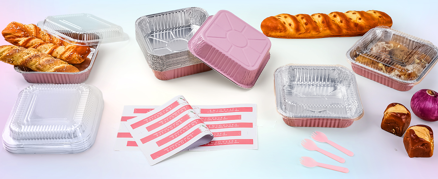 (35 Pack)Pink 8x8 Inch Disposable Aluminum Foil Pans&Square Cake Pans for Parties, Clear Plastic Lids,Eco-Friendly Baking Trays with Stickers&Cake Spoons,Picnics,Casseroles,Takeout,Recyclable Cookware