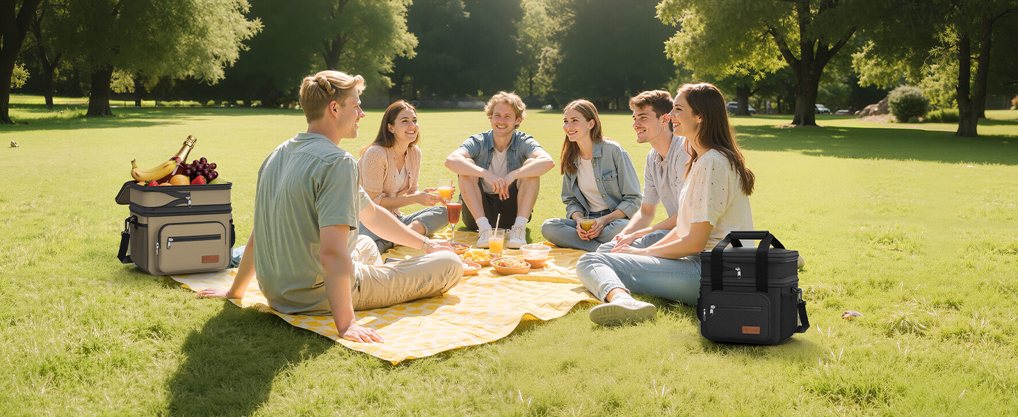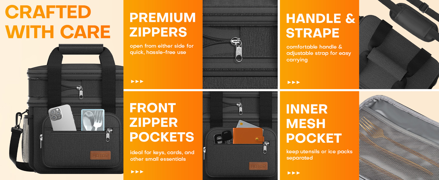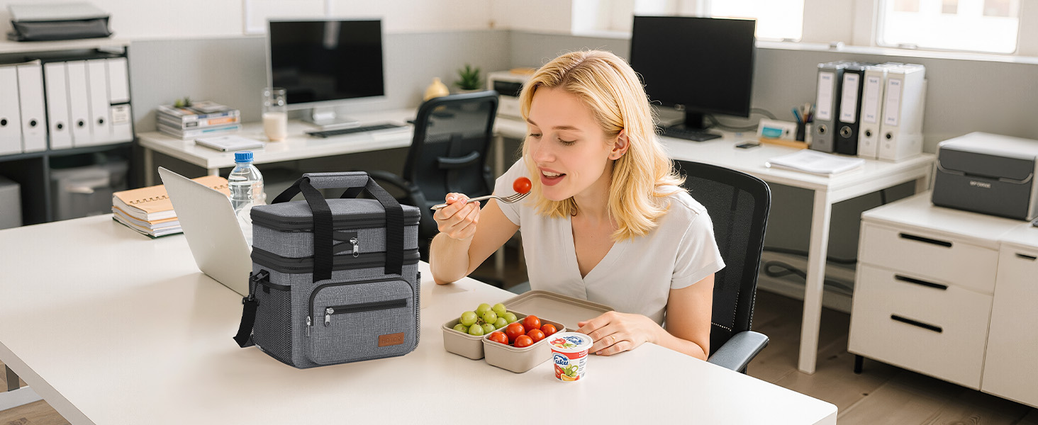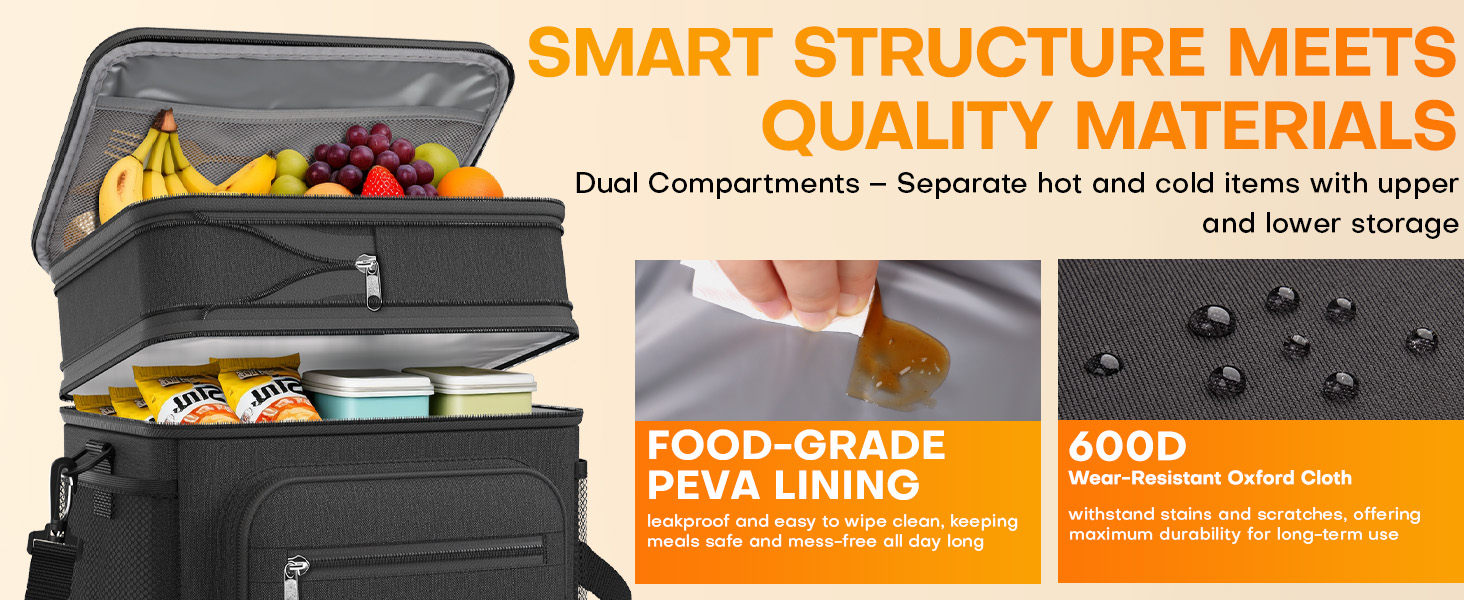 Lunch Box for Men & Women - Double-Layer Insulated Lunch Bag with Leakproof Liner, Portable Cooler for Work, Travel, or Picnic, Black, 12L