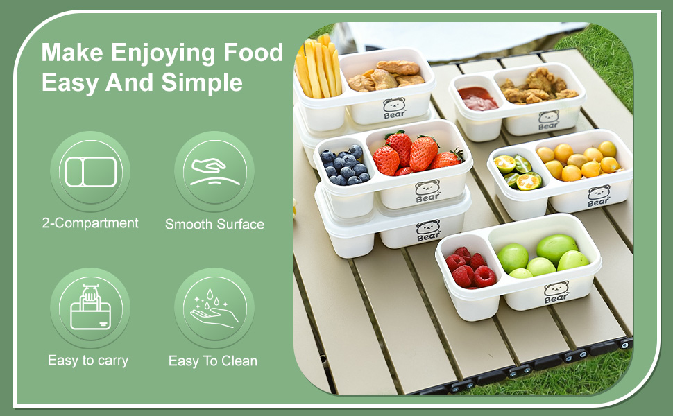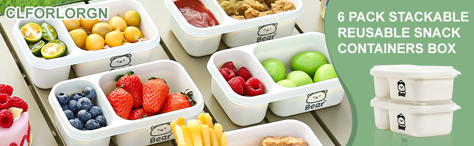 6 Pack Reusable Snack Containers with Lids, 2-Compartment Snackle box, Reusable Snack Packs Container for Meal Prep, Food Storage On-the-Go Snacking for Picnic, Work, Travel