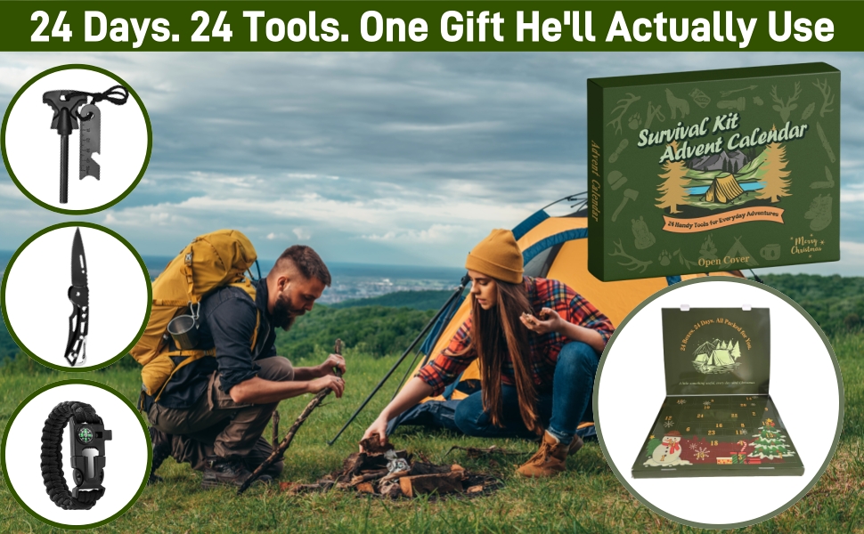 Survival Kit Advent Calendar for Men 2025, 24-Day Christmas Countdown with Outdoor Tools, for Men