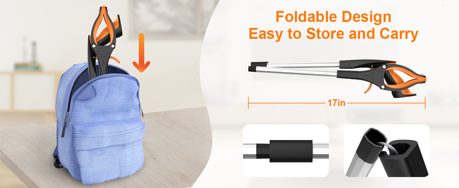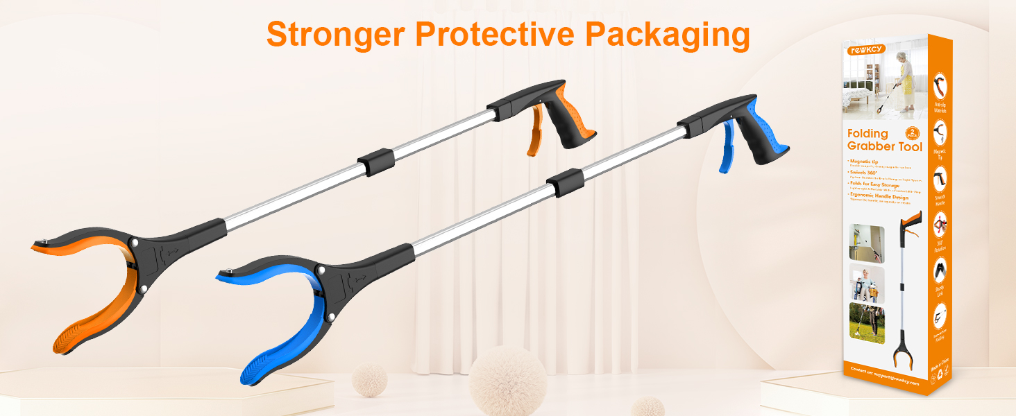 32" Grabber Reacher Tool, 2-Pack Foldable Reacher Grabber Pickup Tool with 360° Rotating Jaw & Magnet, Trash Picker Upper Grabber, Lightweight Grabbers for Seniors Heavy Duty