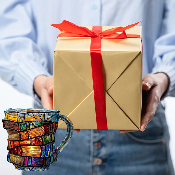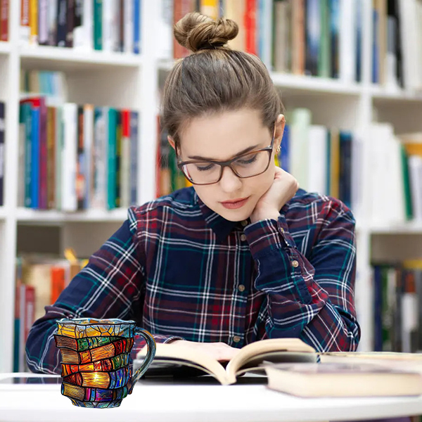 Painted Book Mug, Unique Colorful Resin Stacked Books Coffee Cup, A Collectible Gift for Readers, Librarians and Literature Lovers