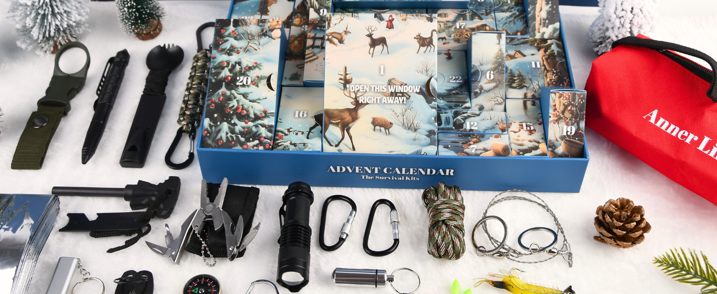 Survival Kit Advent Calendar for Men - Survival Tools Advent Calendar for Adult Teen 24 Days Christmas Countdown - 2025 Xmas Holiday Surprise Gifts for Outdoor Enthusiasts